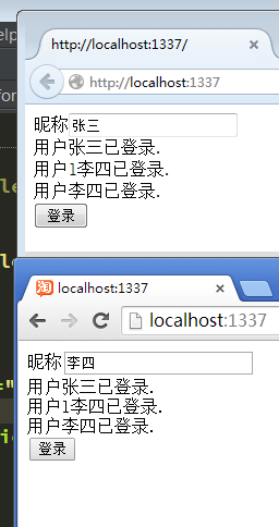 在多个客户端与服务器端建立连接后,socket.io()服务器具有一个sockets属性,属性值为所有与客户端建立连接的socket对象.可以利用该对象的send方法或emit方法向所有客户端广播消息.