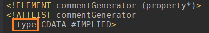 自己动手丰衣足食,我们为啥不自己写个类实现 commentgenerator 接口,然后自定义自己想要的注释呢。查看 commentgenerator 的 dtd,发现正好 commentgenerator 有个 type 属性,可以用来指定自己的注释实现类: