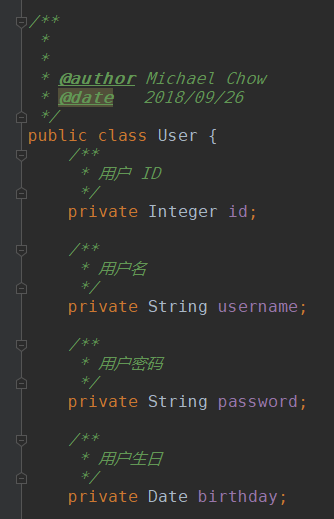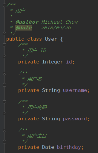 成功的生成了类主食和字段注释~