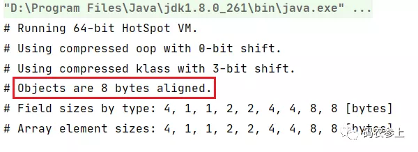 如果当对象是一个数组对象时,那么在对象头中有一个保存数组长度的空间,占用4字节(32bit)空间。通过下面代码进行测试: