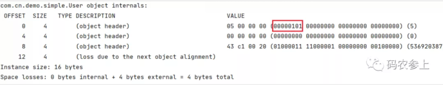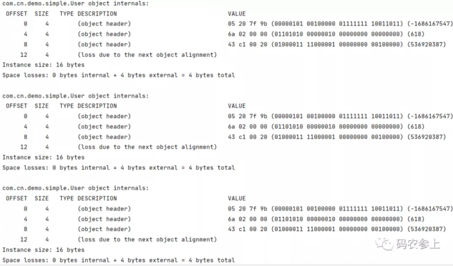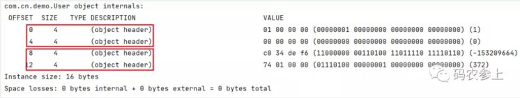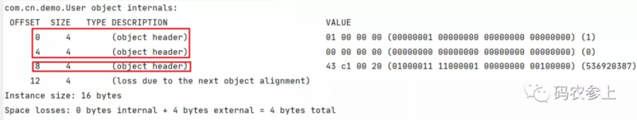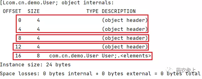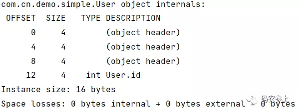 - System.out.println("–THREAD–:"+ClassLayout.parseInstance(user).toPrintable());