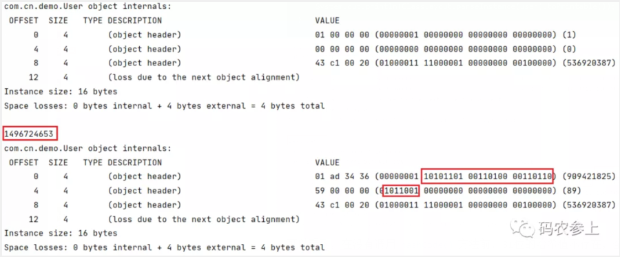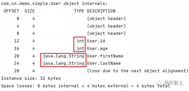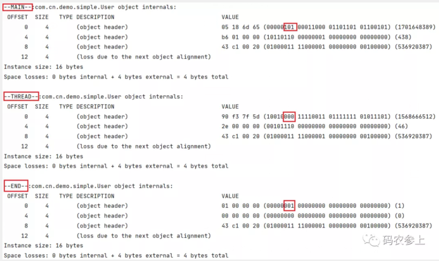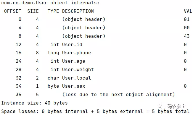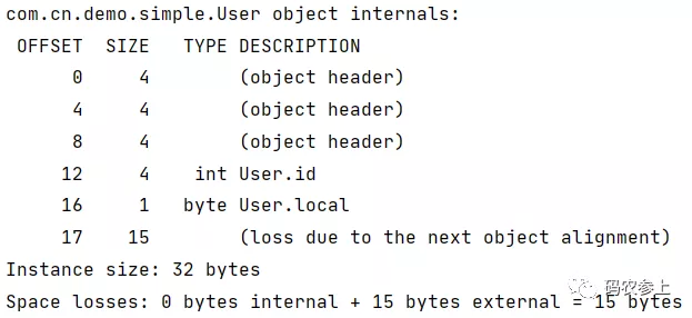 - System.out.println("–END–:"+ClassLayout.parseInstance(user).toPrintable());