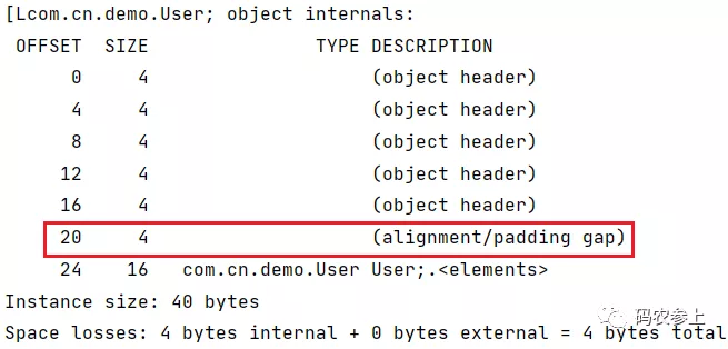 - DESCRIPTION:类型描述,Obejct header 表示对象头,alignment表示对齐填充