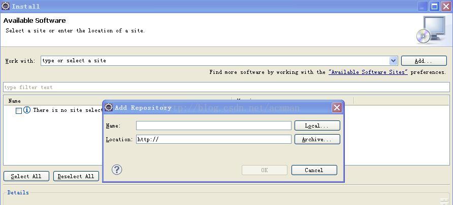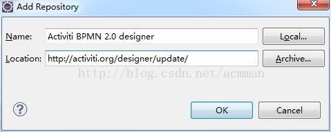 3)然后填入下列字段 name: activiti bpmn 2.0 designer location: http://activiti.org/designer/update/