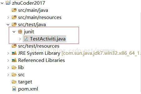 我们在src/test/java下新建一个junit包,在该包下创建一个java类,名为testactiviti: