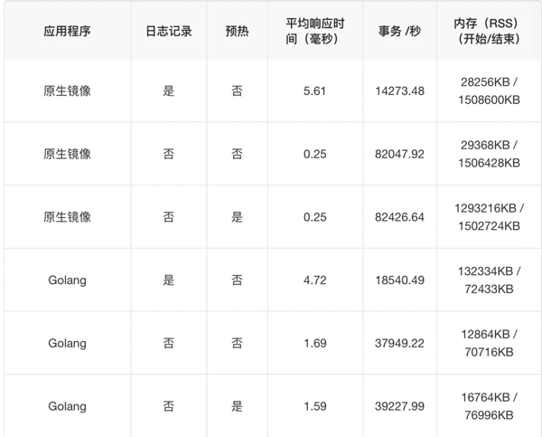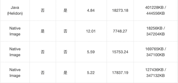 在添加 GraalVM 原生镜像(原生镜像由 GraalVM EE 20.1.1——JDK 11 构建而成)之后,首轮测试结果如下: