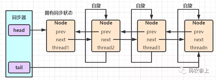 - next:当前节点的后继节点,如果当前节点是同步队列的尾节点,那么next为null