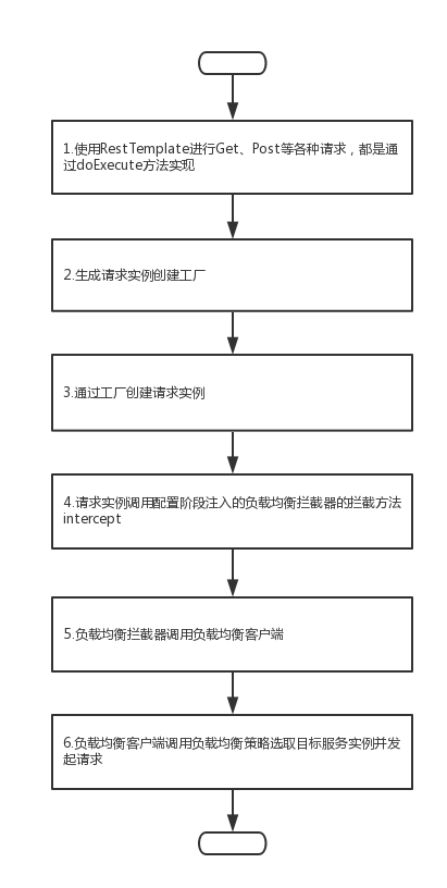 6.负载均衡客户端调用负载均衡策略选取目标服务实例并发起请求