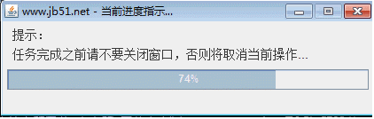 jframe frame = new jframe("www.zzvips.com - 当前进度指示...");