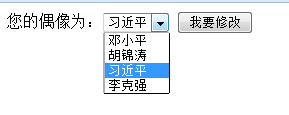您的偶像为:<s:select list="#{1:'邓小平',2:'胡锦涛',3:'习近平',4:'李克强'}" name="id" listkey="key" listvalue="value"/>