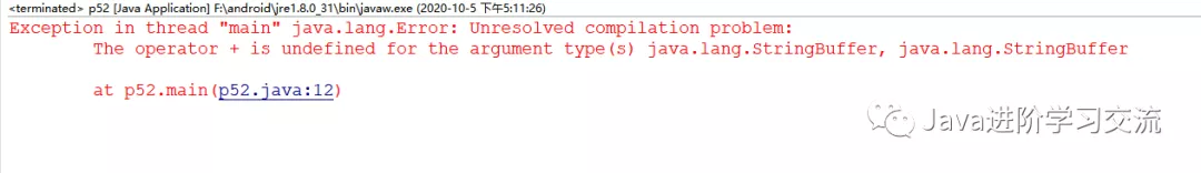 4.String类字符串的连接可以使用”+”,而StringBuffer类不可以使用这个”+”。我们通过下面的这个例子看一下: