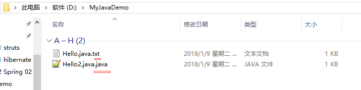 (之前我的是隐藏状态下的,是看不到如下两个文件后缀中的.txt和.java的)