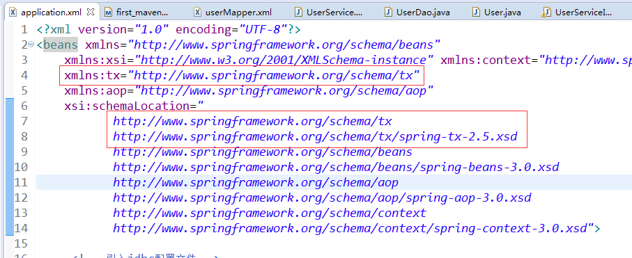 xmlns:tx= "http://www.springframework.org/schema/tx"