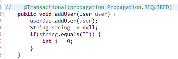 3.2、使用@transactional,在添加用户实现类方法加上注解