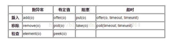 这4类方法中,在队列已满(或为空)的情况下,有些会抛出异常,有些则返回true/false,有些则一直阻塞,还有些则可以设置超时时间,时间到了后,自动退出阻塞状态,实际项目中可根据需要选取适合的方法。