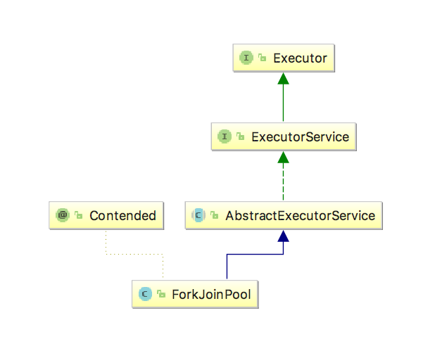 上面的图片展示了forkjoinpool的类关系图,可以看到本质上它就是一个executor。在forkjoinpool里面,有两个特别重要的成员如下: