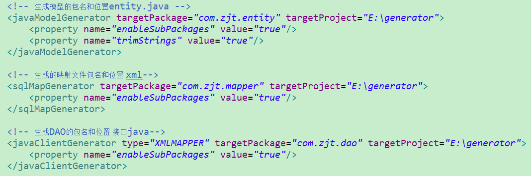 接下来,打开generatorconfig.xml,根据你自己的需求,改变如下配置: