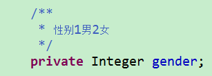 `gender` int(2) default null comment '性别1男2女',