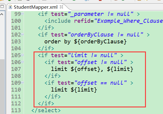 打开studentmapper.xml可以发现已经可以使用mysql的limit分页;