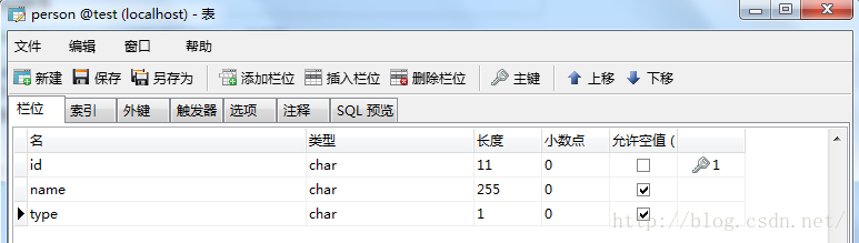 <result column= "type" property= "persontype" jdbctype= "char" />
