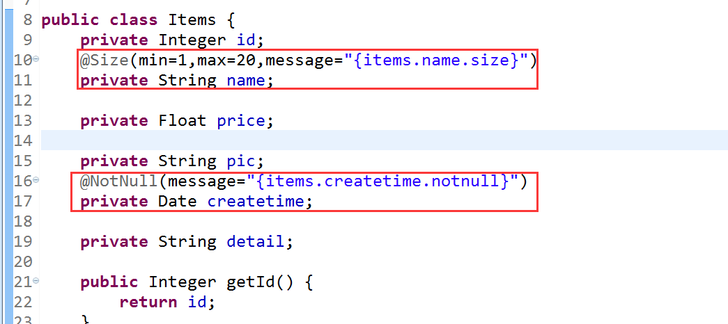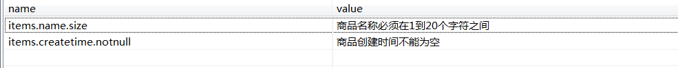 1、items.name.size和items.createtime.notnull:就是读取validationmessagesource.properties中的配置信息。从这里就可以理解该配置文件的意义,防止硬编码。
