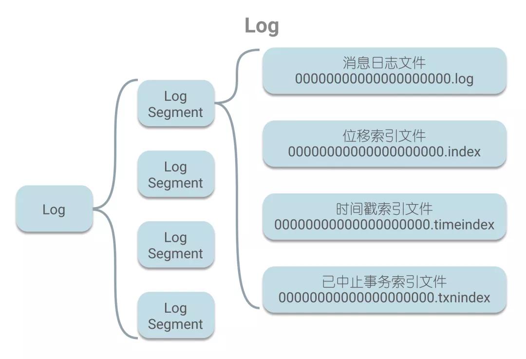 由于Kafak把二分查找应用于索引查找的场景中,所以本文会先对Kafka的日志结构和索引进行简单的介绍。在Kafak中,消息以日志的形式保存,每个日志其实就是一个文件夹,且存有多个日志段,一个日志段指的是文件名(起始偏移)相同的消息日志文件和4个索引文件,如下图所示。