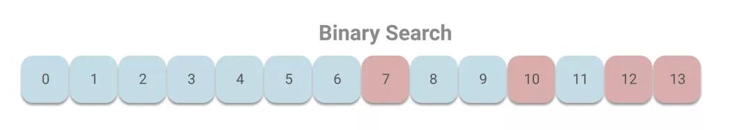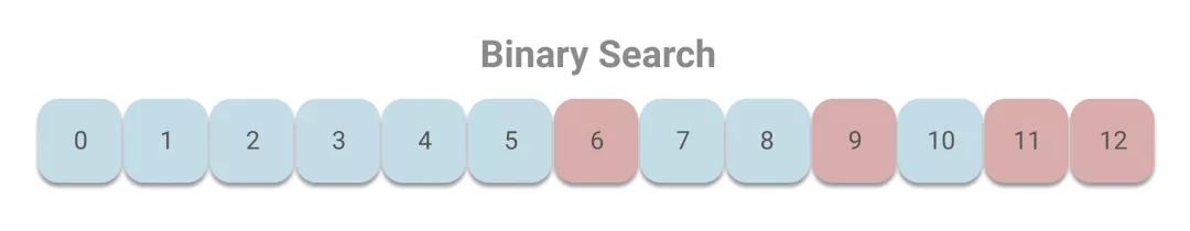 上述代码使用了普通的二分查找,下面我们看下这样会存在什么问题。虽然每个索引项的大小是4B,但操作系统访问内存时的最小单元是页,一般是4KB,即4096B,会包含了512个索引项。而找出在索引中的指定偏移量,对于操作系统访问内存时则变成了找出指定偏移量所在的页。假设索引的大小有13个页,如下图所示: