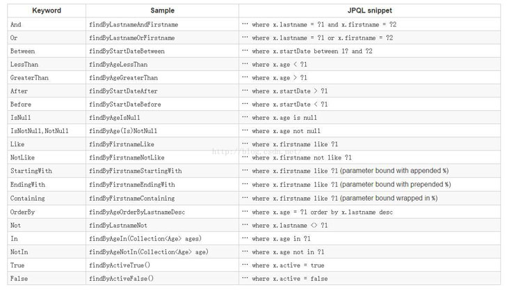 jpa模块支持将查询字符串定义在方法名称中