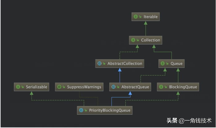 - PriorityBlockingQueue 和 ArrayBlockingQueue 一样是基于数组实现的,但后者在初始化时需要指定长度,前者默认长度是 11。
