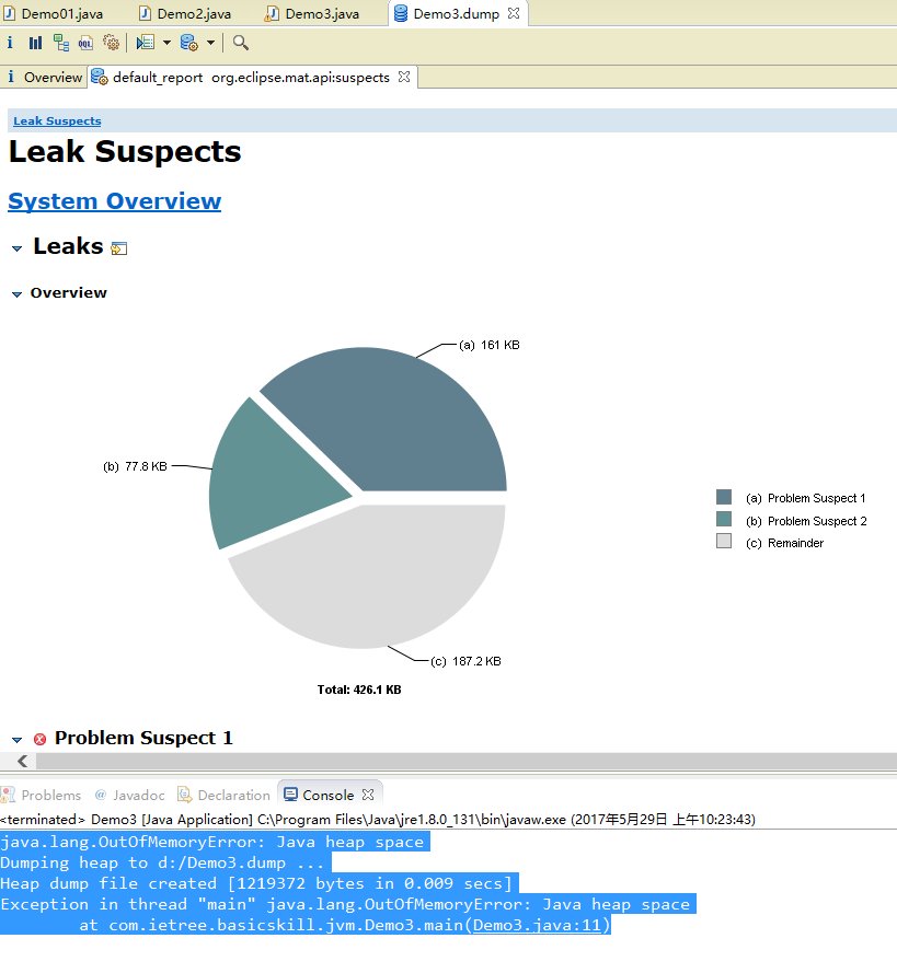 在d:/demo3.dump可以找到对应的文件,使用内存分析工具(memory analyzer)打开: