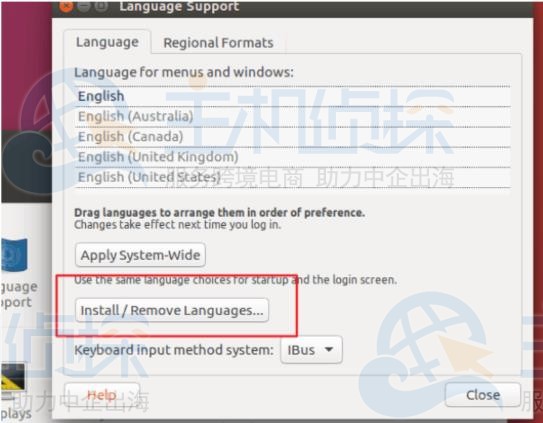 2、在Ubuntu语言设置页面,切换到Language语言选项,点击下方的Install/Remove Languages按钮,继续下一步操作。