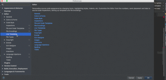官方自带模板毕竟不能满足我们个人编码风格的需要,Live Templates提供了变量函数的方式供我们自定义。