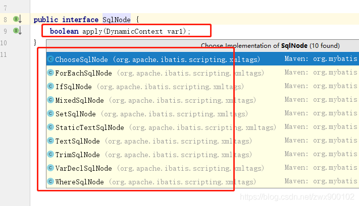 2、MyBatis中有一个SqlNode接口,下面很多一级标签: