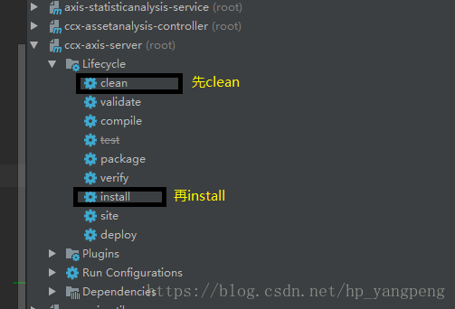 这是前期的准备工作,在准备完成后,直接对父类进行maven的构建操作:先clean 在install;