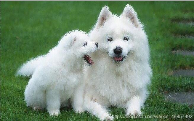 //油画效果 public void drawPainting(String path, Graphics gr){ int[][] img =getImgPixel(path); buffG = new BufferedImage(img.length, img[0].length, 1); Graphics buff=buffG.getGraphics(); for(int i=0; i<img.length; i++){ for(int j=0; j<img[i].length; j++){ int pixel = img[i][j]; Color c = new Color(pixel); buff.setColor(c); ///填充随机大小癿色块 Random random =new Random(); int r = random.nextInt(20)+5; buff.fillOval(i,j,r,r); } } gr.drawImage(buffG,0,0,null); }