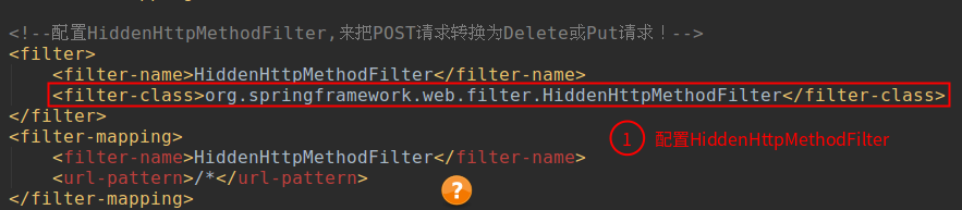但是,浏览器 form 表单只支持 get与 post 请求,而delete、put 等 method 并不支持,spring3.0 添加了一个过滤器,可以将这些请求转换为标准的 http 方法,使得支持 get、post、put 与delete 请求.这个过滤器就是hiddenhttpmethodfilter。