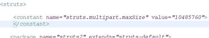 注意:如果即在struts.properties设定文件上传大小,又在struts.xml 设定文件上传大小,则struts.properties的优先级高于struts.xml,一般在一处指定上传大小即可,推荐 struts.properties