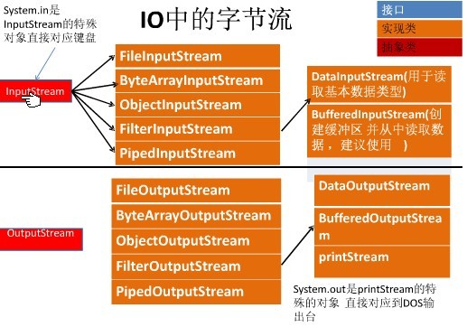 字节流主要操作byte类型数据,以byte数组为准,主要操作类有InputStream(字节输入流)、OutputSteam(字节输出流)由于IputStream和OutputStream都是抽象类,所要要用这两个类的话,则首先要通过子类实例化对象。下面就是这两个类的一些子类结构图