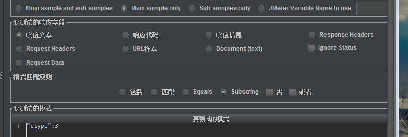 (2)响应代码:匹配响应代码,比如http请求中‘200'代表成功
