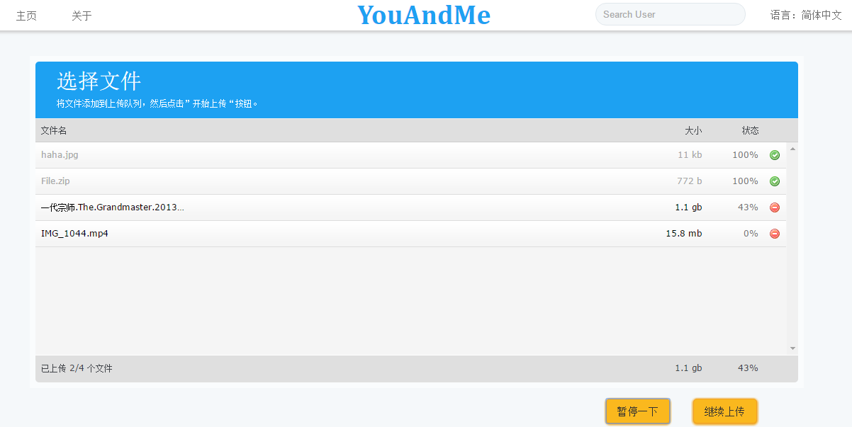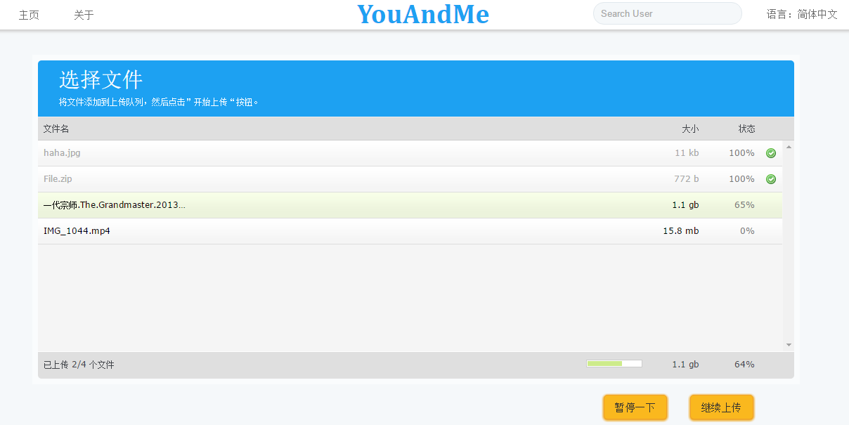 在此之前先说说我的项目,做的j2ee项目运用到spring+springmvc+mybatis的框架集合,是关于一个社交平台的网站,类似于facebook,twitter,微博等,起了一个名字叫youandme。我大胆地构想了这个项目应该有一个用户资料共享的平台,或是一部好看的电影,或是一套电视剧,或是居家必备的食谱,也有可能是好看的风景图,各式各样。用户可以搜索想要的资料并下载。因此首先要解决的就是各式各样(大)文件的上传。