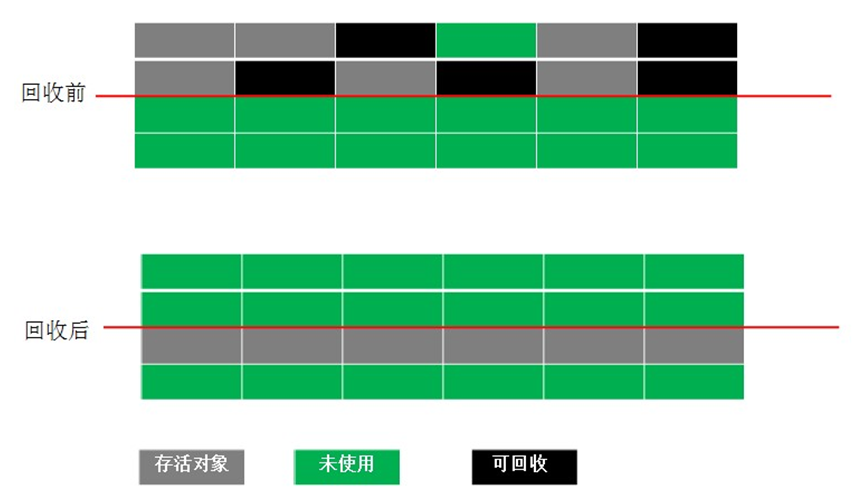 一种典型的基于coping算法的垃圾回收是stop-and-copy算法,它将堆分成对象区和空闲区域区,在对象区与空闲区域的切换过程中,程序暂停执行。