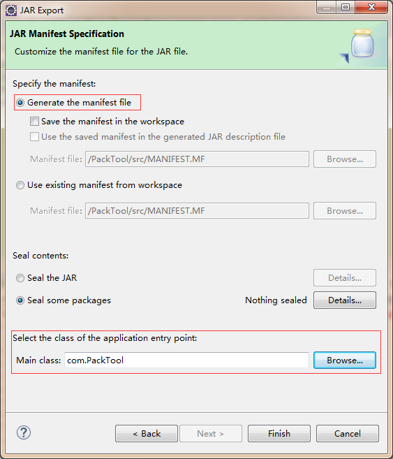 1) 通过指定“main-class”来达到可执行jar文件的目的