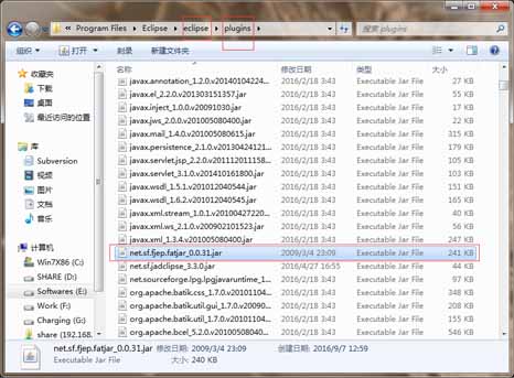 下载net.sf.fjep.fatjar_0.0.31.jar,将去放在eclipse的plugins目录下