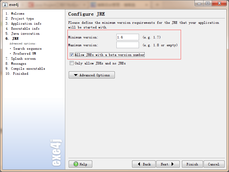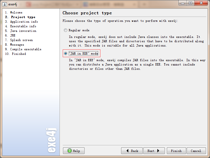注:用到的软件是exe4j,注意要注册激活(网上随便找个注册码就好),不然运行生成的exe文件时会有弹出框