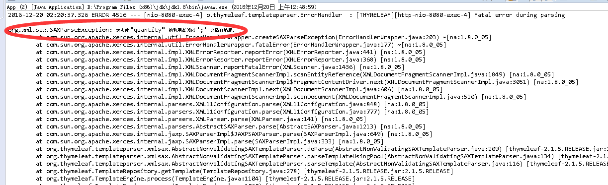 否则,运行“thymeleaf”模板引擎时就会出现错误“org.xml.sax.SAXParseException:…”