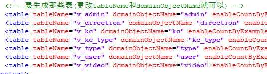 (4)在tablename中填写你所要填写的表名。domainobjectname填写你想要生成的名字。