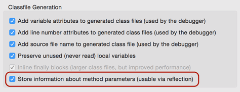 遗憾的是,保留参数名这一选项由编译开关javac -parameters