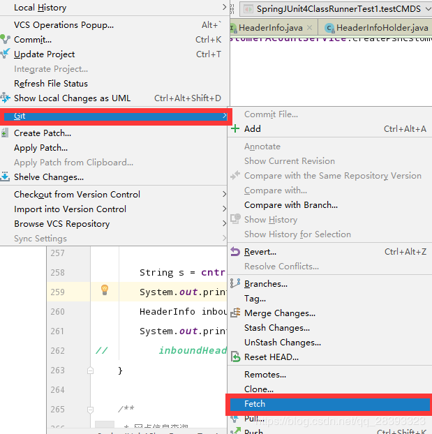 3修改成功以后,点击VCS-Git-fetch,刷新远程修改到本地,此时点击右下角git分支树,就是最新的分支树了