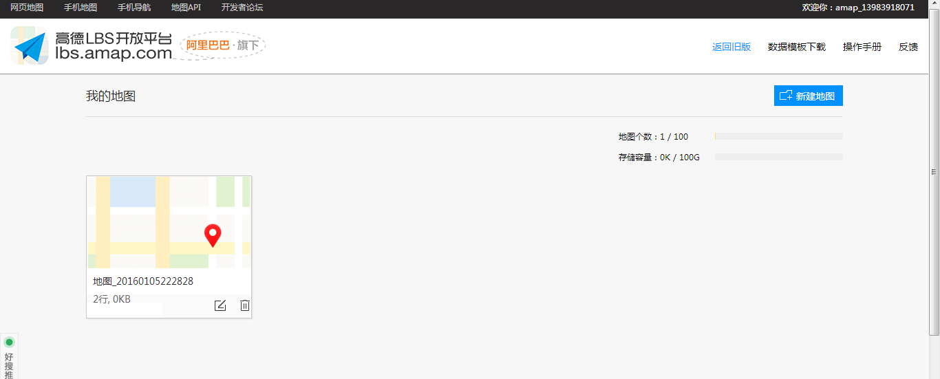 上面这个截图是我创建好的结果,这里我们需要先点击右上角的 数据模版下载,将模版下载下来之后,修改相应的数据,增加自己需要的字段后,然后点新建地图将