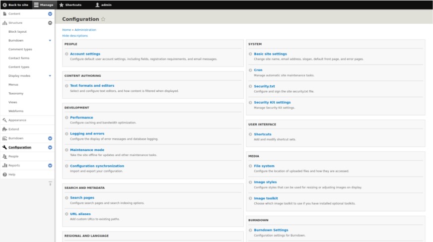 Drupal 9采用了极简设计,包含内容管理系统的基本功能,如果要应用到更多高级功能,需要使用第三方模块来扩展功能。Drupal 9仪表盘界面简洁直观,很容易找到所需功能,也可以根据需要自定义导航菜单中创建快捷方式。另外Drupal网站对比Joomla网站要更有利于SEO优化。